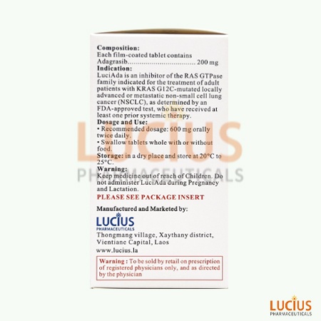 Adagrasib, manufactured by Lucius Pharmaceuticals, is a targeted drug for KRASG12C mutations, and it is the second targeted drug of this type in the world. This drug is mainly used for the treatment of adult patients with locally advanced or metastatic non-small cell lung cancer (NSCLC) with KRASG12C mutations who have received at least one prior systemic therap.