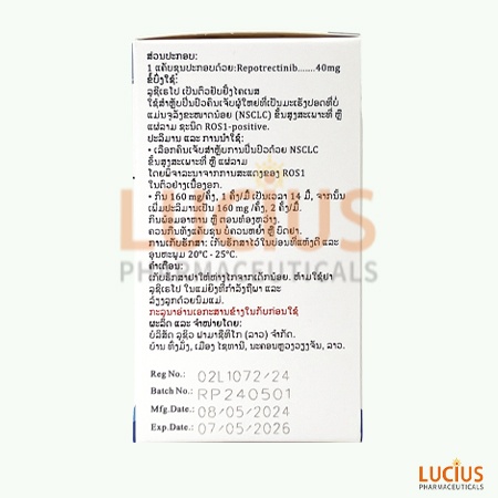 The Lucius version of Repotrectinib has a drug specification of 40mg/60capsules, which fully considers the convenience and compliance of patients' medication. Patients can take the prescribed dosage and frequency according to the doctor's prescription and advice.
